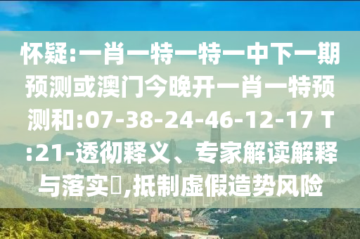 一肖一特一特一中下一期預(yù)測(cè)或澳門(mén)今晚開(kāi)一肖一特預(yù)測(cè)和:07-38-24-46-12-17 T:21的透徹釋義、專(zhuān)家解讀解釋與落實(shí)?