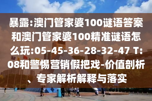 關于暴露澳門管家婆100謎語答案和澳門管家婆精準謎語玩法等相關內容的價值剖析、專家解析解釋與落實警惕營銷假把戲的探討