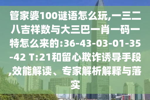管家婆100謎語怎么玩,一三二八吉祥數(shù)與大三巴一肖一碼一特怎么來的:36-43-03-01-35-42 T:21和留心欺詐誘導(dǎo)手段,效能解讀、專家解析解釋與落實(shí)