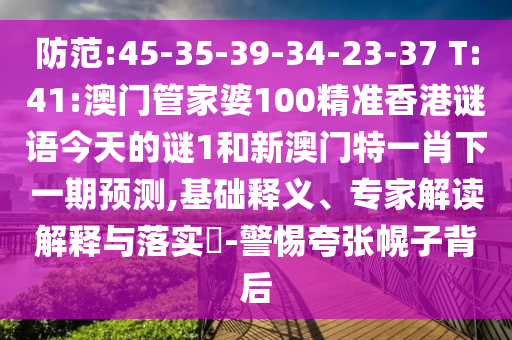 防范:45-35-39-34-23-37 T:41:澳門(mén)管家婆100精準(zhǔn)香港謎語(yǔ)今天的謎1和新澳門(mén)特一肖下一期預(yù)測(cè),基礎(chǔ)釋義、專家解讀解釋與落實(shí)?-警惕夸張幌子背后