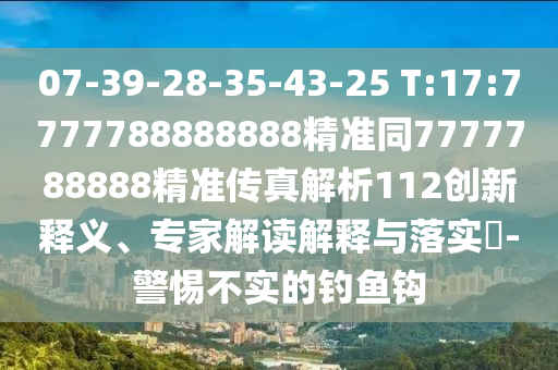 關(guān)于關(guān)鍵詞“07-39-28-35-43-25 T:17:7777788888888精準同7777788888精準傳真解析112創(chuàng)新釋義、專家解讀解釋與落實警惕不實的釣魚鉤”的全面釋義、專家解讀與落實、以及警惕虛假宣傳的解析如下: