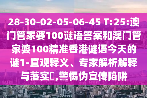 28-30-02-05-06-45 T:25:澳門管家婆100謎語(yǔ)答案和澳門管家婆100精準(zhǔn)香港謎語(yǔ)今天的謎1-直觀釋義、專家解析解釋與落實(shí)?,警惕偽宣傳陷阱