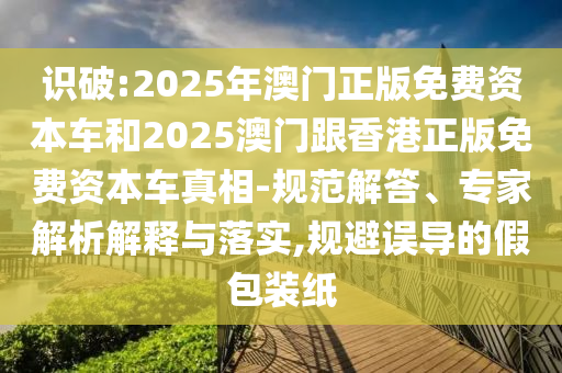 識破:2025年澳門正版免費資本車和2025澳門跟香港正版免費資本車真相-規(guī)范解答、專家解析解釋與落實,規(guī)避誤導的假包裝紙