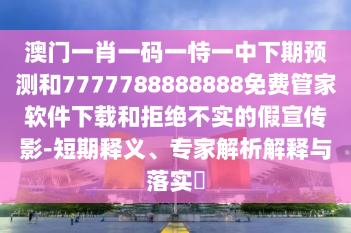 關(guān)于澳門一肖一碼一恃一中下期預(yù)測(cè)和7777788888888免費(fèi)管家軟件下載的全面釋義、專家解讀與落實(shí),以及警惕虛假宣傳的解析