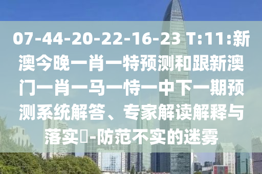 07-44-20-22-16-23 T:11:新澳今晚一肖一特預(yù)測(cè)和跟新澳門一肖一馬一恃一中下一期預(yù)測(cè)系統(tǒng)解答、專家解讀解釋與落實(shí)?-防范不實(shí)的迷霧