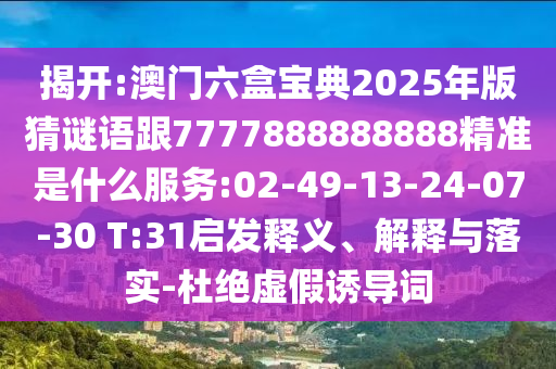 澳門(mén)六盒寶典2025年版猜謎語(yǔ)跟7777888888888精準(zhǔn)是什么服務(wù):02-49-13-24-07-30 T:31的啟發(fā)釋義、解釋與落實(shí)