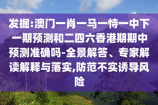 關(guān)于澳門一肖一馬一恃一中下一期預(yù)測和二四六香港期期中預(yù)測準(zhǔn)確性的探討,以及防范不實誘導(dǎo)風(fēng)險的策略——全景解答、專家解讀解釋與落實