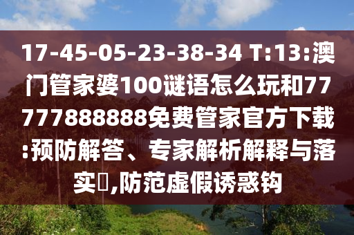17-45-05-23-38-34 T:13:澳門管家婆100謎語怎么玩和77777888888免費管家官方下載:預(yù)防解答、專家解析解釋與落實?,防范虛假誘惑鉤