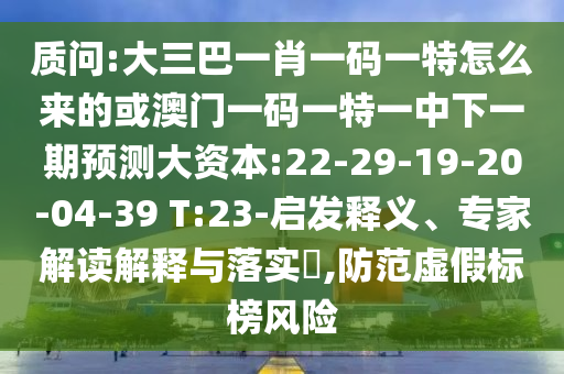 質(zhì)問:大三巴一肖一碼一特怎么來的或澳門一碼一特一中下一期預(yù)測(cè)大資本:22-29-19-20-04-39 T:23-啟發(fā)釋義、專家解讀解釋與落實(shí)?,防范虛假標(biāo)榜風(fēng)險(xiǎn)
