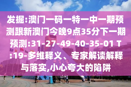 發(fā)掘:澳門一碼一特一中一期預(yù)測跟新澳門今晚9點35分下一期預(yù)測:31-27-49-40-35-01 T:19-多維釋義、專家解讀解釋與落實,小心夸大的陷阱