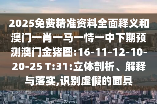 2025免費精準(zhǔn)資料全面釋義和澳門一肖一馬一恃一中下期預(yù)測澳門金豬圖:16-11-12-10-20-25 T:31:立體剖析、解釋與落實,識別虛假的面具