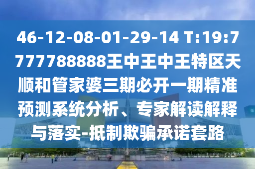 46-12-08-01-29-14 T:19:7777788888王中王中王特區(qū)天順和管家婆三期必開一期精準預(yù)測系統(tǒng)分析、專家解讀解釋與落實-抵制欺騙承諾套路