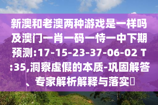 新澳和老澳兩種游戲是一樣嗎及澳門(mén)一肖一碼一恃一中下期預(yù)測(cè):17-15-23-37-06-02 T:35,洞察虛假的本質(zhì)-鞏固解答、專家解析解釋與落實(shí)?
