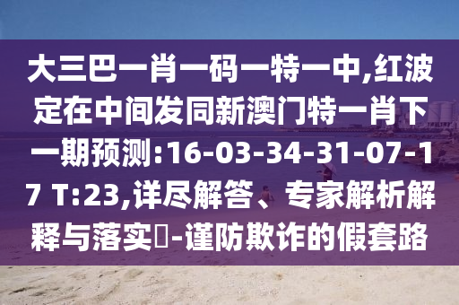 大三巴一肖一碼一特一中,紅波定在中間發(fā)同新澳門特一肖下一期預(yù)測:16-03-34-31-07-17 T:23,詳盡解答、專家解析解釋與落實(shí)?-謹(jǐn)防欺詐的假套路