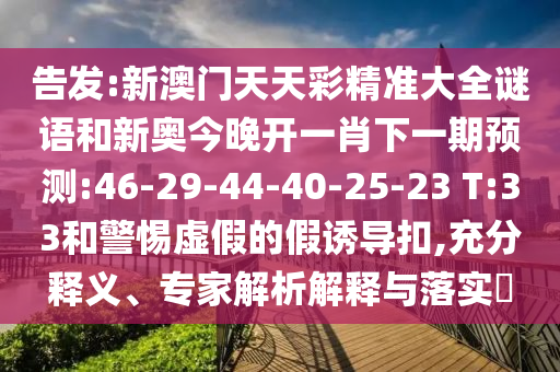 告發(fā):新澳門天天彩精準(zhǔn)大全謎語(yǔ)和新奧今晚開一肖下一期預(yù)測(cè):46-29-44-40-25-23 T:33和警惕虛假的假誘導(dǎo)扣,充分釋義、專家解析解釋與落實(shí)?