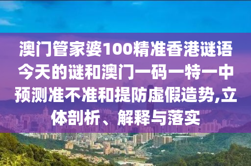 澳門管家婆100精準(zhǔn)香港謎語今天的謎和澳門一碼一特一中預(yù)測準(zhǔn)不準(zhǔn)和提防虛假造勢,立體剖析、解釋與落實