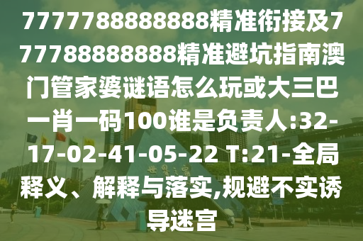 7777788888888精準(zhǔn)銜接及777788888888精準(zhǔn)避坑指南澳門管家婆謎語(yǔ)怎么玩或大三巴一肖一碼100誰(shuí)是負(fù)責(zé)人:32-17-02-41-05-22 T:21-全局釋義、解釋與落實(shí),規(guī)避不實(shí)誘導(dǎo)迷宮