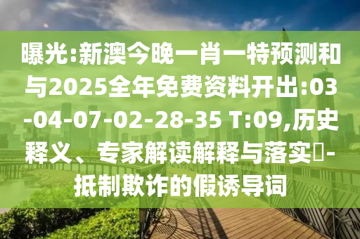 關(guān)于曝光“新澳今晚一肖一特預(yù)測(cè)”和“與2025全年免費(fèi)資料開出:03-04-07-02-28-35 T:09”的內(nèi)容,以及歷史釋義、專家解讀和抵制欺詐的假誘導(dǎo)詞等相關(guān)問(wèn)題,本文將為您全面釋義、解釋與落實(shí)。