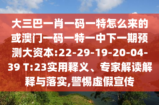 大三巴一肖一碼一特怎么來的或澳門一碼一特一中下一期預(yù)測(cè)大資本:22-29-19-20-04-39 T:23的實(shí)用釋義、專家解讀解釋與落實(shí)