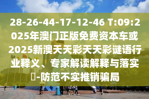 28-26-44-17-12-46 T:09:2025年澳門正版免費資本車或2025新澳天天彩天天彩謎語行業(yè)釋義、專家解讀解釋與落實?-防范不實推銷騙局