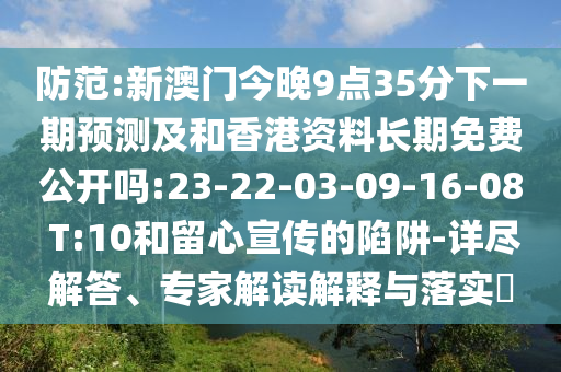 防范:新澳門今晚9點35分下一期預(yù)測及和香港資料長期免費公開嗎:23-22-03-09-16-08 T:10和留心宣傳的陷阱-詳盡解答、專家解讀解釋與落實?