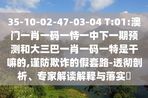 35-10-02-47-03-04 T:01:澳門一肖一碼一恃一中下一期預(yù)測和大三巴一肖一碼一特是干嘛的,謹(jǐn)防欺詐的假套路-透徹剖析、專家解讀解釋與落實(shí)?
