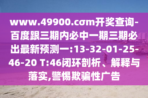 www.49900.cσm開(kāi)獎(jiǎng)查詢(xún)-百度跟三期內(nèi)必中一期三期必出最新預(yù)測(cè)一:13-32-01-25-46-20 T:46閉環(huán)剖析、解釋與落實(shí),警惕欺騙性廣告