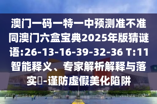 澳門一碼一特一中預(yù)測準(zhǔn)不準(zhǔn)同澳門六盒寶典2025年版猜謎語:26-13-16-39-32-36 T:11智能釋義、專家解析解釋與落實?-謹(jǐn)防虛假美化陷阱