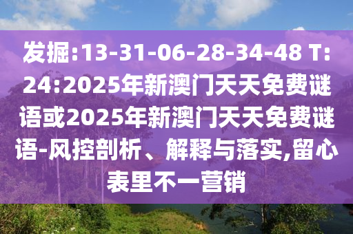 本次關(guān)鍵詞涉及“發(fā)掘:13-31-06-28-34-48”以及與之相關(guān)的“T:24:2025年新澳門天天免費(fèi)謎語”或“風(fēng)控剖析”,也提到了“表里不一營銷”這一概念,需要我們進(jìn)行深入解析與落實(shí),并提醒公眾警惕可能的虛假宣傳。