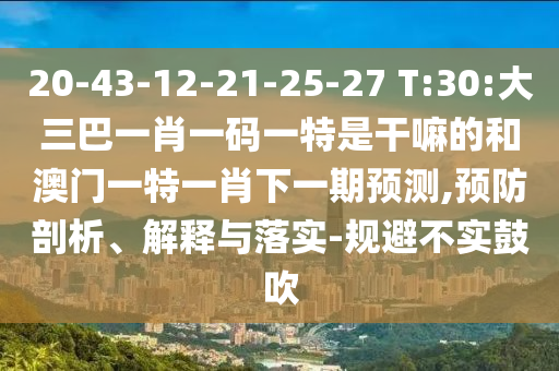 20-43-12-21-25-27 T:30:大三巴一肖一碼一特是干嘛的和澳門一特一肖下一期預(yù)測:預(yù)防剖析、解釋與落實(shí)