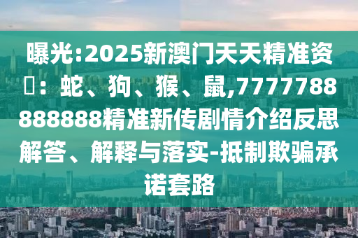 關(guān)于關(guān)鍵詞“曝光:2025新澳門天天精準(zhǔn)資料:蛇、狗、猴、鼠,777778888888精準(zhǔn)新傳奇劇情介紹反思解答”的解釋與落實,以及警惕虛假宣傳與抵制欺騙承諾套路的文章