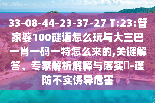 33-08-44-23-37-27 T:23:管家婆100謎語怎么玩與大三巴一肖一碼一特怎么來的的關鍵解答、專家解析解釋與落實?