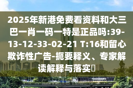 2025年新港免費看資料和大三巴一肖一碼一特是正品嗎:39-13-12-33-02-21 T:16和留心欺詐性廣告-扼要釋義、專家解讀解釋與落實?