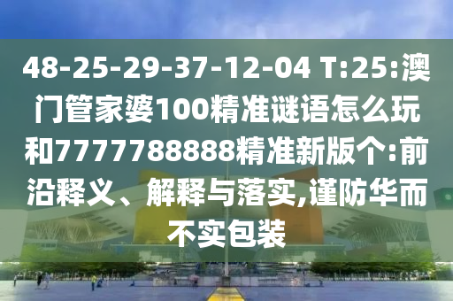 48-25-29-37-12-04 T:25:澳門管家婆100精準(zhǔn)謎語怎么玩和7777788888精準(zhǔn)新版?zhèn)€:前沿釋義、解釋與落實,謹(jǐn)防華而不實包裝