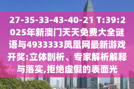 27-35-33-43-40-21 T:39:2025年新澳門天天免費大全謎語與4933333鳳凰網(wǎng)最新游戲開獎:立體剖析、專家解析解釋與落實,拒絕虛假的表面光