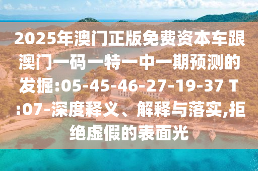 2025年澳門正版免費資本車跟澳門一碼一特一中一期預(yù)測的發(fā)掘:05-45-46-27-19-37 T:07-深度釋義、解釋與落實,拒絕虛假的表面光