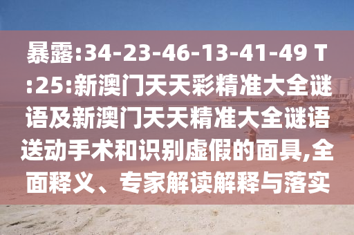34-23-46-13-41-49 T:25以及新澳門天天彩精準(zhǔn)大全謎語(yǔ)等相關(guān)內(nèi)容的全面釋義、專家解讀與落實(shí)及警惕虛假宣傳