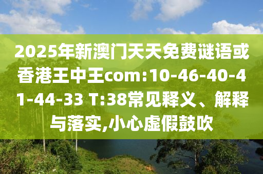 2025年新澳門天天免費謎語或香港王中王com:10-46-40-41-44-33 T:38常見釋義、解釋與落實,小心虛假鼓吹