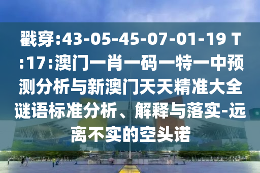 戳穿:43-05-45-07-01-19 T:17:澳門一肖一碼一特一中預(yù)測分析與新澳門天天精準大全謎語標準分析、解釋與落實-遠離不實的空頭諾
