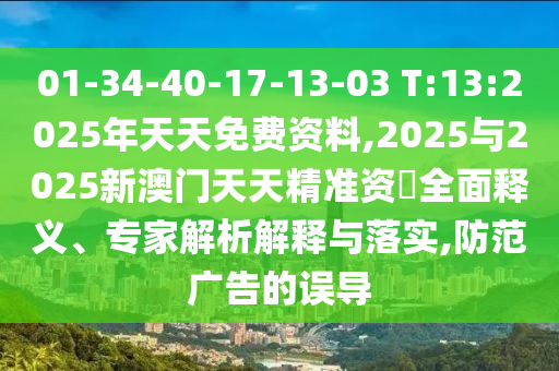 關(guān)于關(guān)鍵詞“01-34-40-17-13-03 T:13:2025年天天免費(fèi)資料,2025與2025新澳門(mén)天天精準(zhǔn)資料”的全面釋義、專(zhuān)家解讀與落實(shí)以及防范廣告的誤導(dǎo)