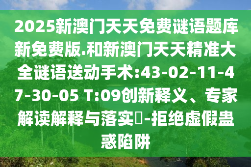 2025新澳門(mén)天天免費(fèi)謎語(yǔ)題庫(kù)新免費(fèi)版”和“新澳門(mén)天天精準(zhǔn)大全謎語(yǔ)送動(dòng)手術(shù):43-02-11-47-30-05 T:09”的解讀與警惕虛假宣傳