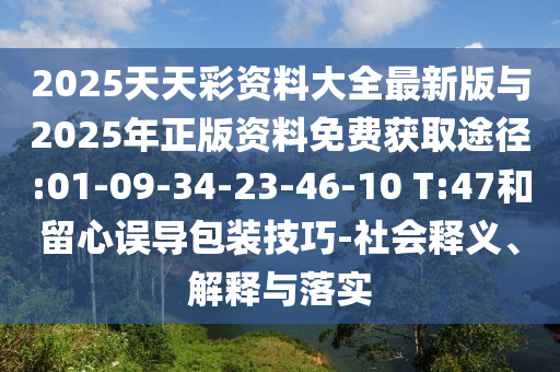 2025天天彩資料大全最新版與2025年正版資料免費(fèi)獲取途徑:01-09-34-23-46-10 T:47和留心誤導(dǎo)包裝技巧-社會(huì)釋義、解釋與落實(shí)