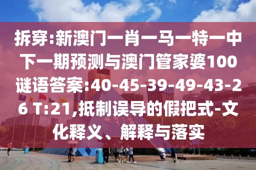 拆穿:新澳門(mén)一肖一馬一特一中下一期預(yù)測(cè)與澳門(mén)管家婆100謎語(yǔ)答案:40-45-39-49-43-26 T:21,抵制誤導(dǎo)的假把式-文化釋義、解釋與落實(shí)