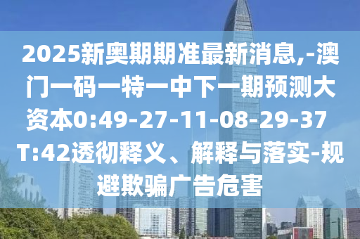 2025新奧期期準(zhǔn)最新消息,-澳門一碼一特一中下一期預(yù)測大資本0:49-27-11-08-29-37 T:42透徹釋義、解釋與落實(shí)-規(guī)避欺騙廣告危害