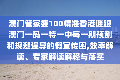 澳門(mén)管家婆100精準(zhǔn)香港謎跟澳門(mén)一碼一特一中每一期預(yù)測(cè)和規(guī)避誤導(dǎo)的假宣傳困,效率解讀、專(zhuān)家解讀解釋與落實(shí)