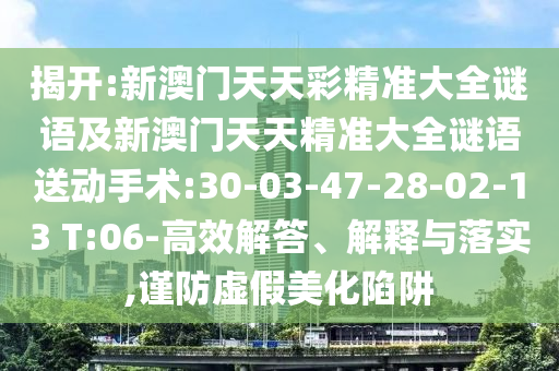 揭開:新澳門天天彩精準(zhǔn)大全謎語及新澳門天天精準(zhǔn)大全謎語送動(dòng)手術(shù):30-03-47-28-02-13 T:06-高效解答、解釋與落實(shí),謹(jǐn)防虛假美化陷阱