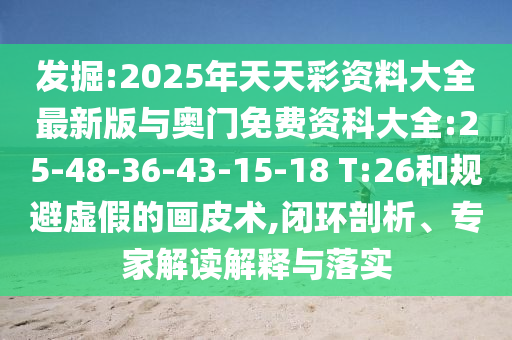 發(fā)掘:2025年天天彩資料大全最新版與奧門免費(fèi)資科大全:25-48-36-43-15-18 T:26和規(guī)避虛假的畫皮術(shù),閉環(huán)剖析、專家解讀解釋與落實(shí)