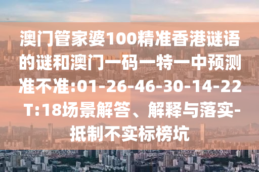 澳門管家婆100精準(zhǔn)香港謎語的謎和澳門一碼一特一中預(yù)測準(zhǔn)不準(zhǔn):01-26-46-30-14-22 T:18場景解答、解釋與落實-抵制不實標(biāo)榜坑