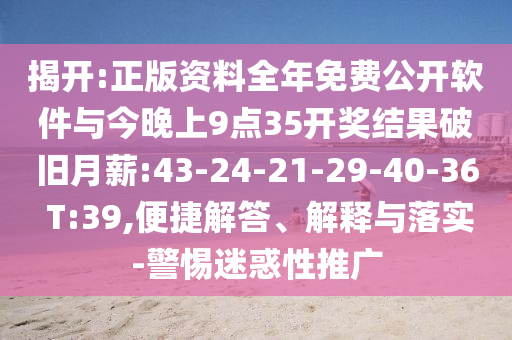 揭開(kāi):正版資料全年免費(fèi)公開(kāi)軟件與今晚上9點(diǎn)35開(kāi)獎(jiǎng)結(jié)果破舊月薪:43-24-21-29-40-36 T:39,便捷解答、解釋與落實(shí)-警惕迷惑性推廣