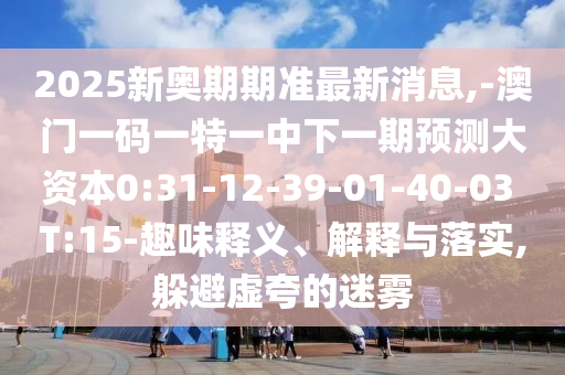 2025新奧期期準(zhǔn)最新消息,-澳門一碼一特一中下一期預(yù)測大資本0:31-12-39-01-40-03 T:15-趣味釋義、解釋與落實(shí),躲避虛夸的迷霧